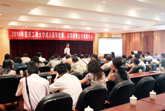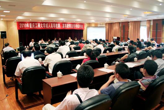 市教委、市考试院的领导在大会上先后发言,对我校成人高等教育、自考考试在质和量上的协调发展表示高度肯定,感谢我校对重庆市成人高等教育、自考考试的贡献,同时指出规范办学是学校发展的生命力,学校要抓好专业设置、课程设置,进一步规范管理,办出重庆工商大学的特色和品牌。