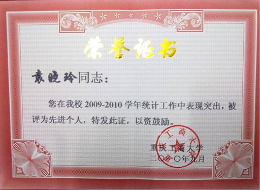 在9月27日学校统计工作会上,学校对2009-2010学年统计工作先进个人进行了表彰。我院袁晓灵同志,因在2009-2010学年统计工作中表现突出,被评为先进个人。