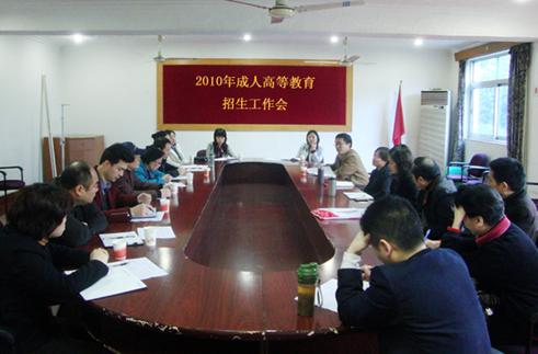 4月14日上午,ok138cn太阳集团在江北校区三楼会议室召开了2010年成人高等教育招生工作会。ok138cn太阳集团罗惠玉院长、任奇志副院长、陈善国副院长,各函授站的主要领导及招生管理人员共20余人参加了此次会议。