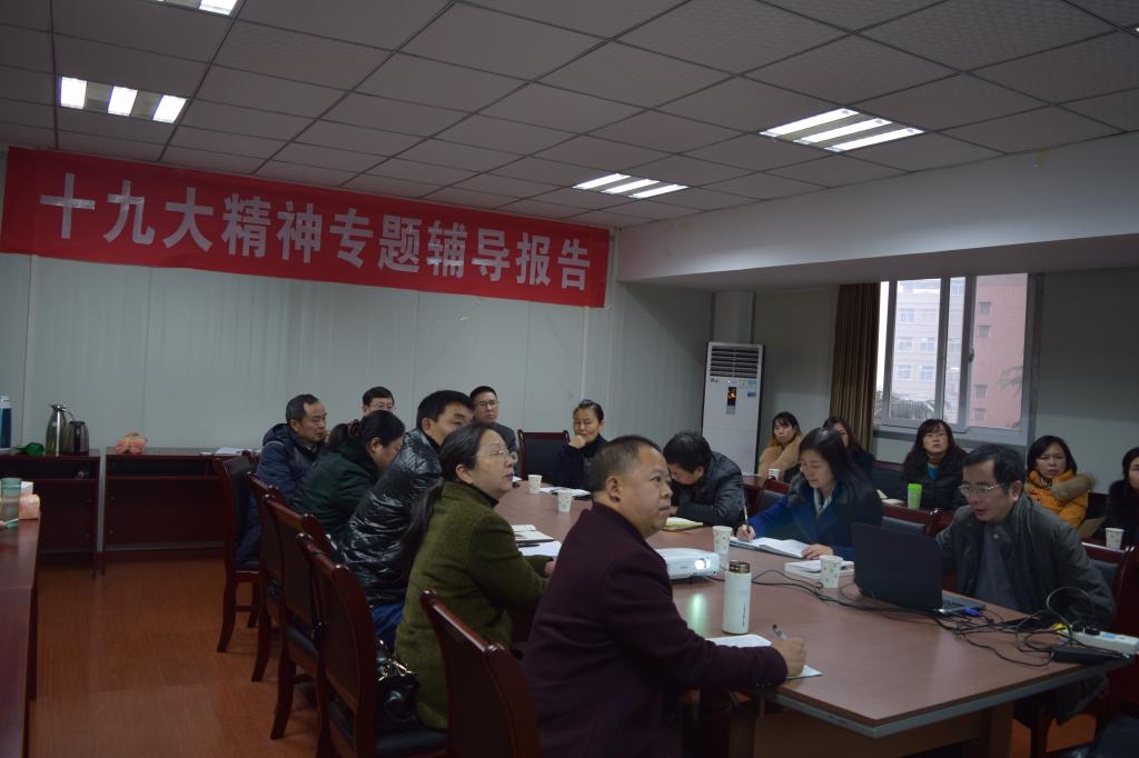 为深入学习贯彻党的十九大精神以及习近平新时代中国特色社会主义思想, 2017年12月21日上午,赵骅副校长在ok138cn太阳集团会议室,为ok138cn太阳集团全体教职员工宣讲十九大精神。