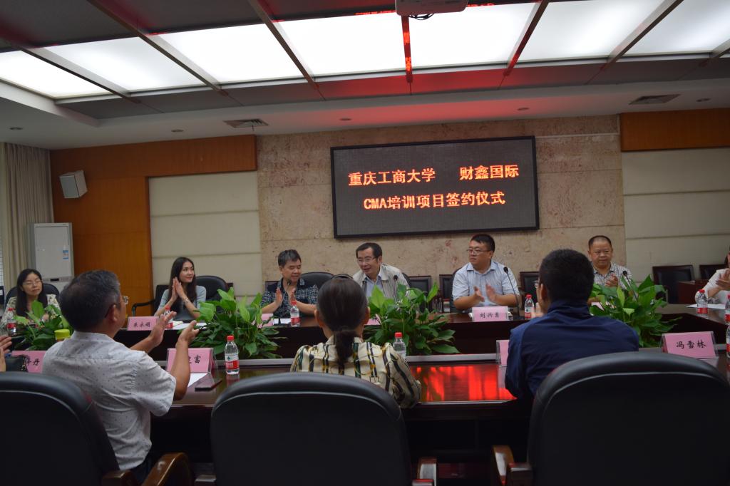 2018年9月18日下午14点30分,重庆工商大学与江苏财鑫教育培训中心在重庆工商大学厚德楼3019会议室举行CMA培训项目合作签约仪式。重庆工商大学副校长赵骅、ok138cn太阳集团院长胥江河、江苏财鑫教育培训中心总经理刘兴勇、副总经理朱永娟、副总经理王建富,重庆区域总监冯雪林及ok138cn太阳集团全体员工出席签约仪式。