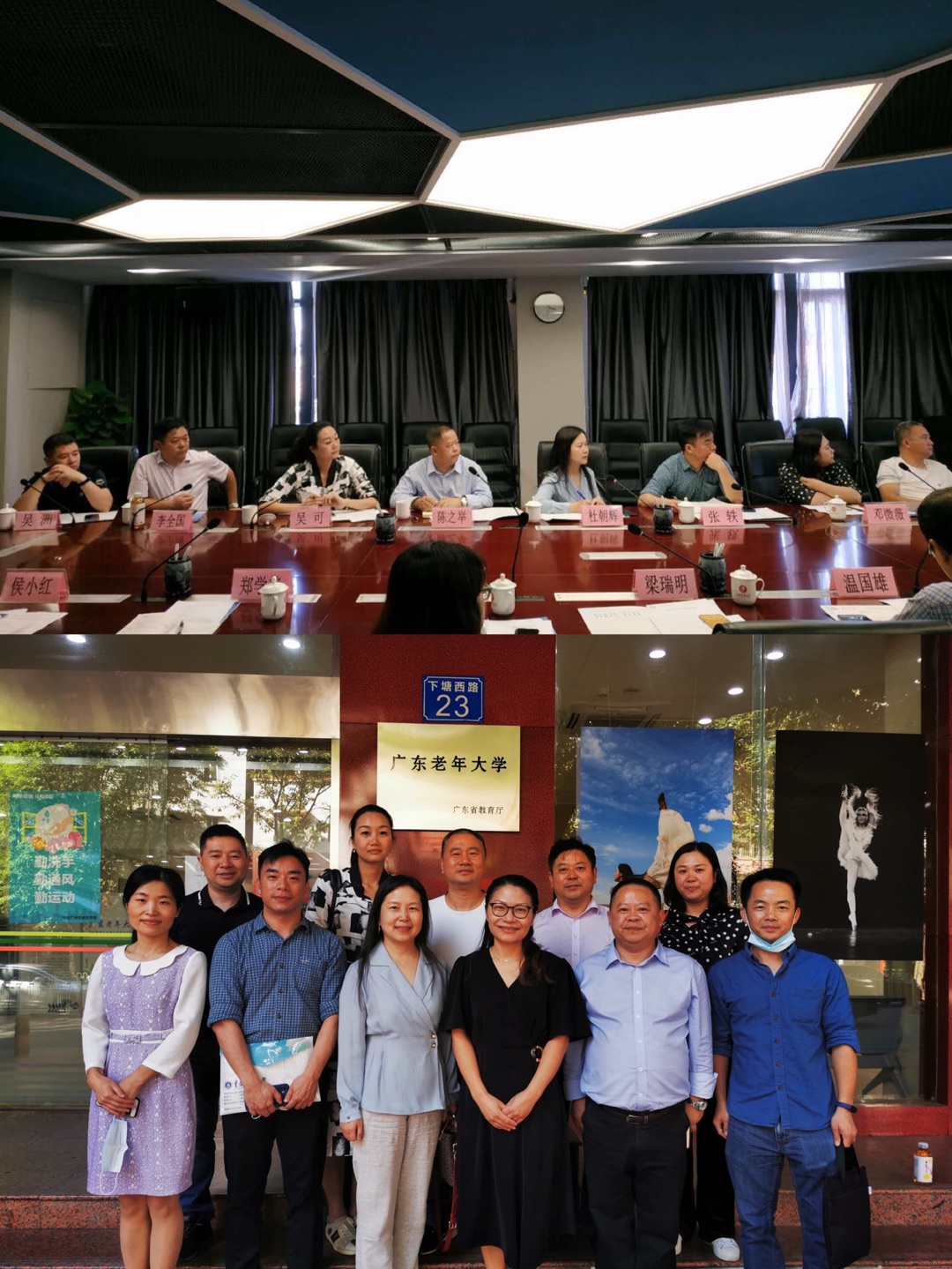 在广东开放大学,终身教育学院(老年大学)院长梁瑞明介绍了学校基本情况,终身教育学院(老年大学)的基本业务、主要成果等。双方人员就体制机制优化、人员队伍建设、十四五展望等进行了深入交流。