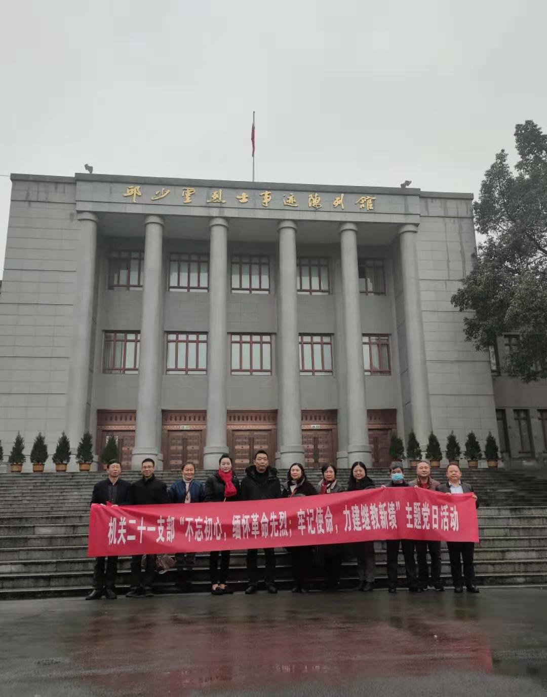 近日,机关二十一支部组织支部全体党员赴邱少云烈士纪念馆开展“不忘初心,缅怀革命先烈;牢记使命,力建继教新绩”主题党日活动。