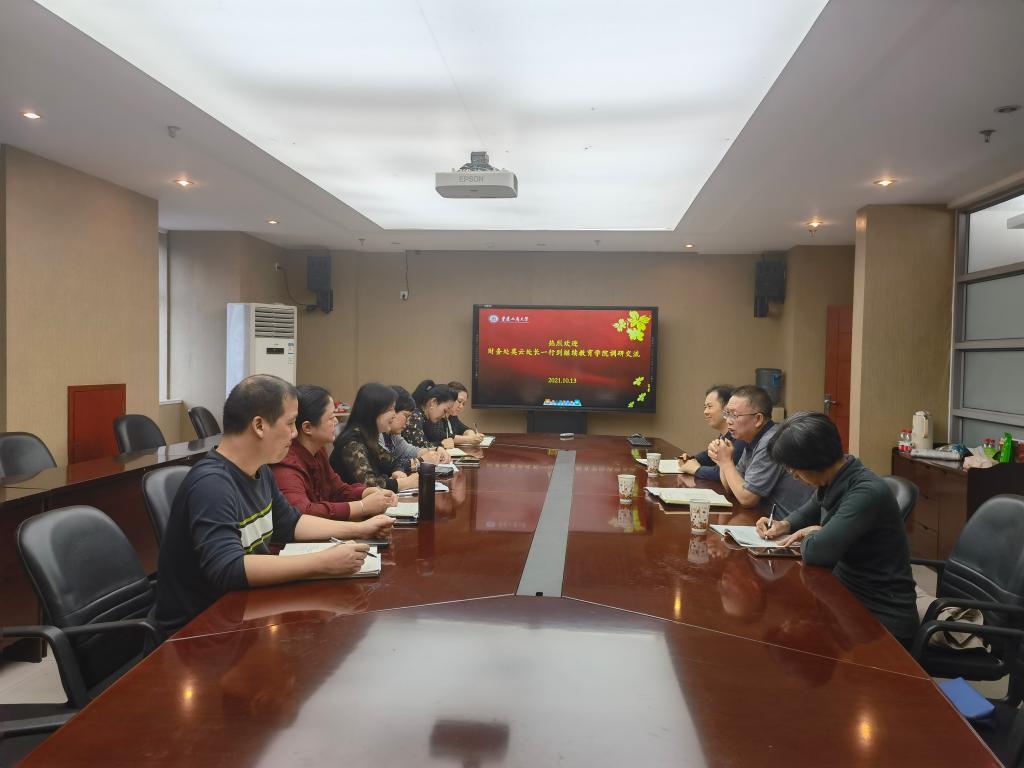 10月13日下午,财务处莫云处长、贾鸿副处长、何玉霞老师到ok138cn太阳集团调研指导继续教育财务管理工作。ok138cn太阳集团院长杜朝辉、培训中心张译丹、办公室吴可、学历部邓微薇和罗志强、财务管理人员陈炜等参加了座谈会。