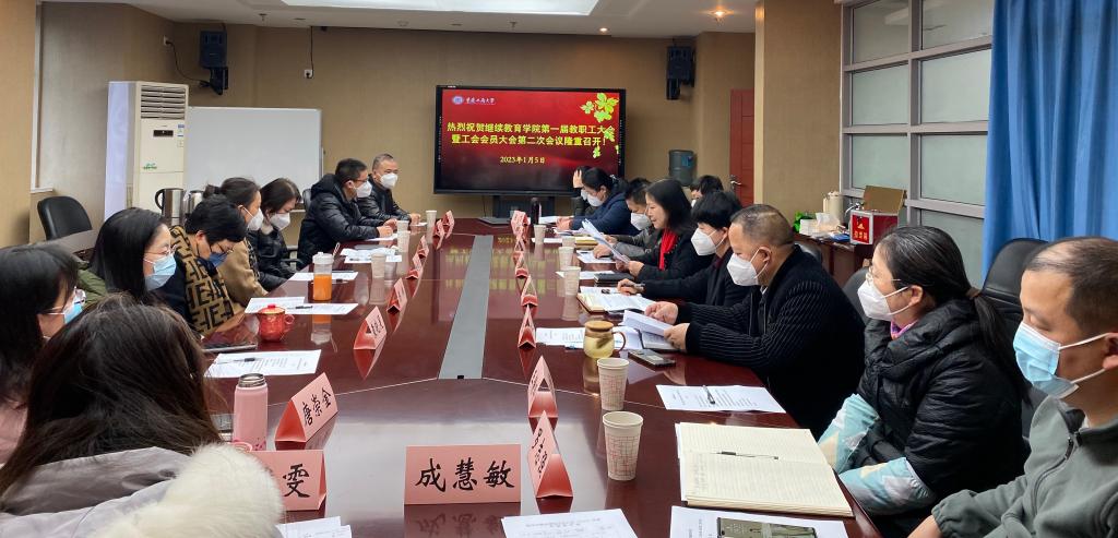 2023年1月5日,ok138cn太阳集团在学院会议室隆重召开了学院第一届教职工大会暨工会会员大会第二次会议。学院班子成员和全体教职工共18人参加了会议。会议由学院党总支副书记陆嘉主持。