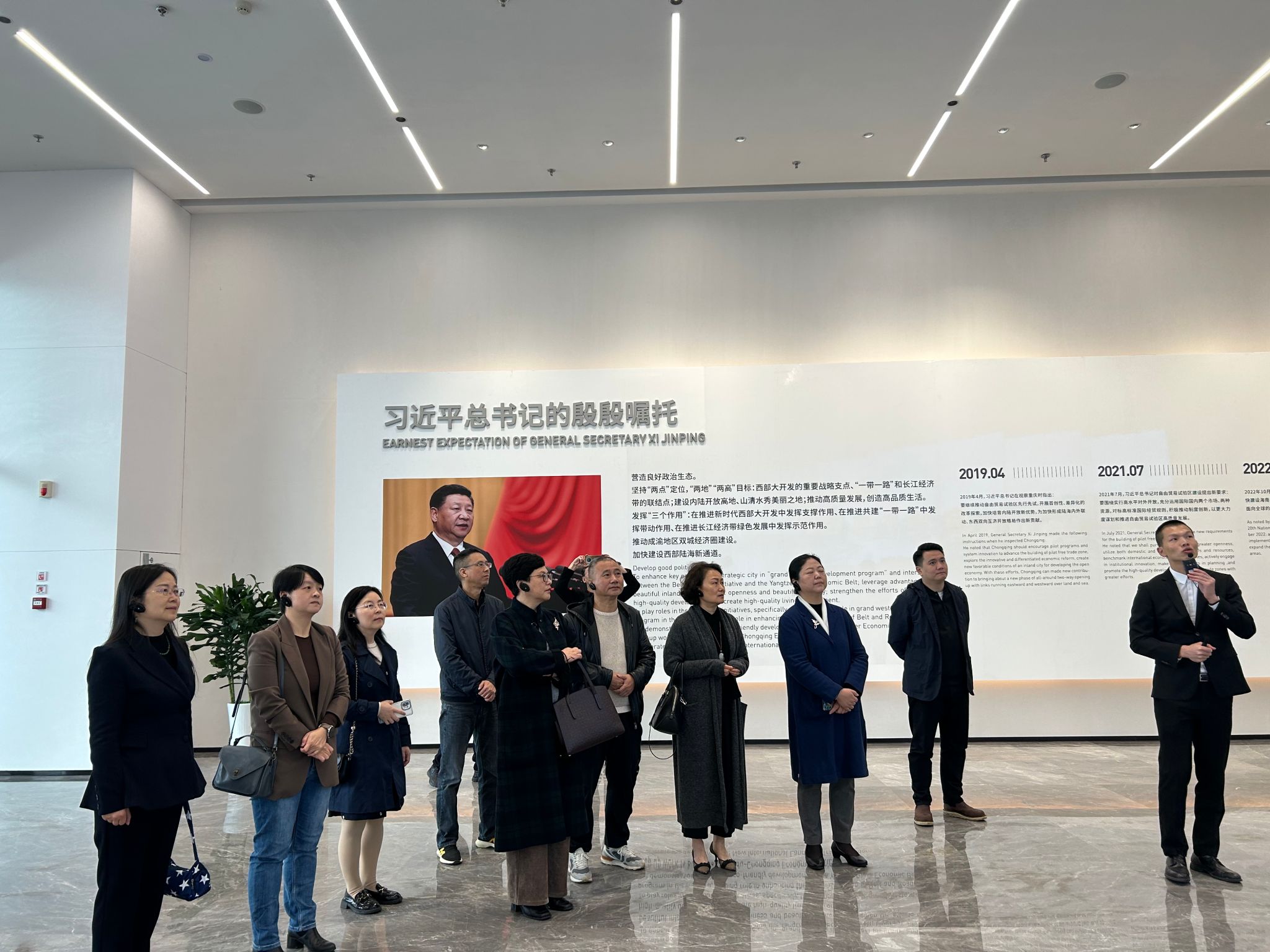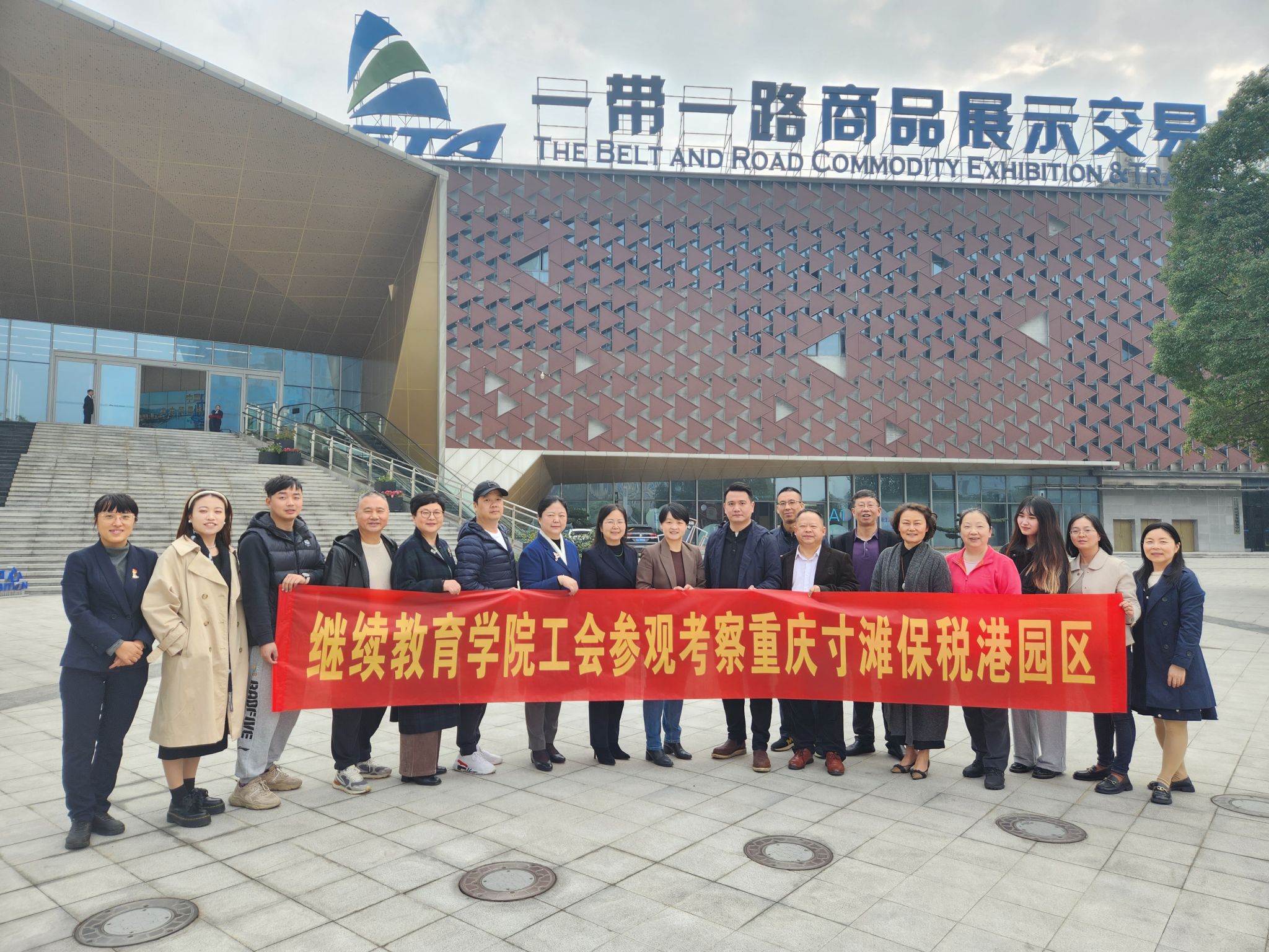为近距离感受重庆两路果园港综合保税区的发展情况,拓宽教职工的视野,助推我校继续教育事业的高质量发展,11月23日ok138cn太阳集团工会组织全体教职工到综合保税区参观考察并进行现场交流活动。重庆保税商品展示交易中心有限公司党支部负责人、副总经理彭云和重庆保税商品展示交易中心有限公司党群人事部、办公室主任万幸全程陪同考察。