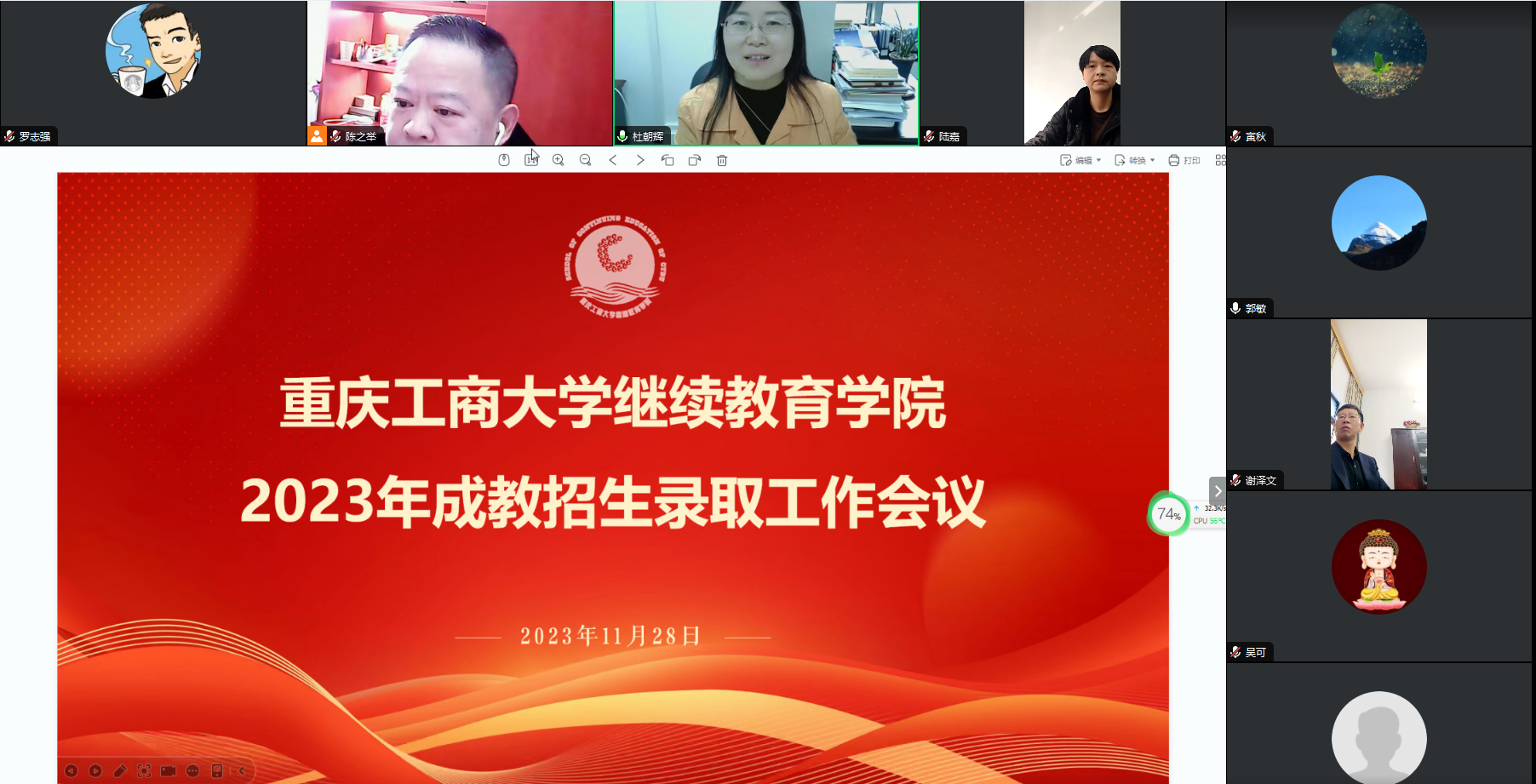 2023年高等学历继续教育录取工作在即,为确保我校高等学历继续教育录取工作公平、公正、平稳、有序进行,11月28日上午ok138cn太阳集团召开了高等学历继续教育招生录取工作线上会议,学校纪委副书记、纪检监察室主任米密,ok138cn太阳集团院长杜朝辉、党总支副书记陆嘉、ok138cn太阳集团招生领导小组成员,各校外教学点负责人和相关工作人员参加了会议,会议由ok138cn太阳集团院长杜朝辉主持。