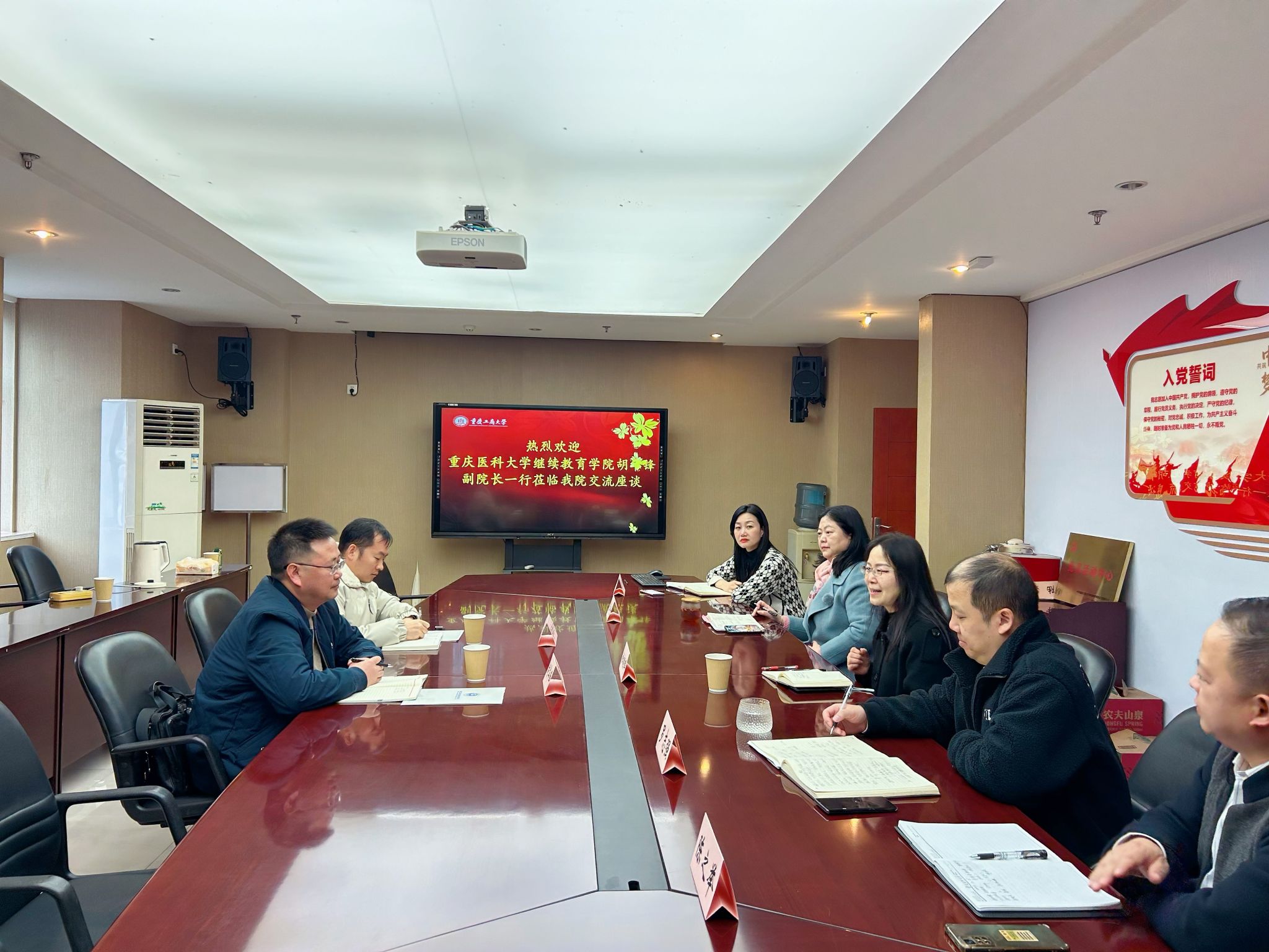 12月25日,重庆医科大学ok138cn太阳集团副院长胡华锋一行到我院调研交流。杜朝辉院长及学院相关科室(中心)负责人、工会主席参加了座谈会。