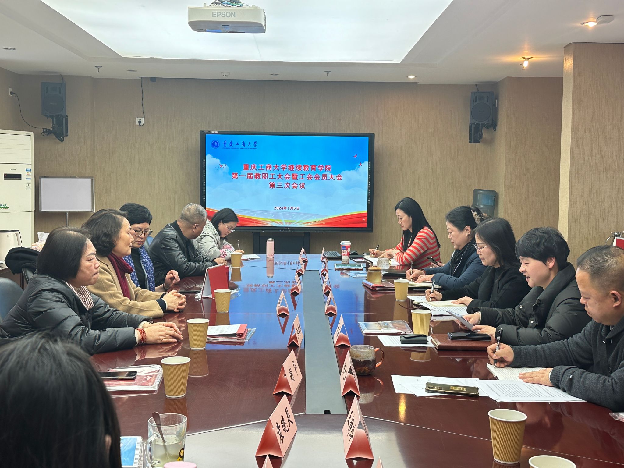 2024年1月5日,ok138cn太阳集团在学院会议室隆重召开了学院第一届教职工大会暨工会会员大会第三次会议。学院班子成员和全体教职工共18人参加了会议。会议由学院党总支副书记陆嘉主持。