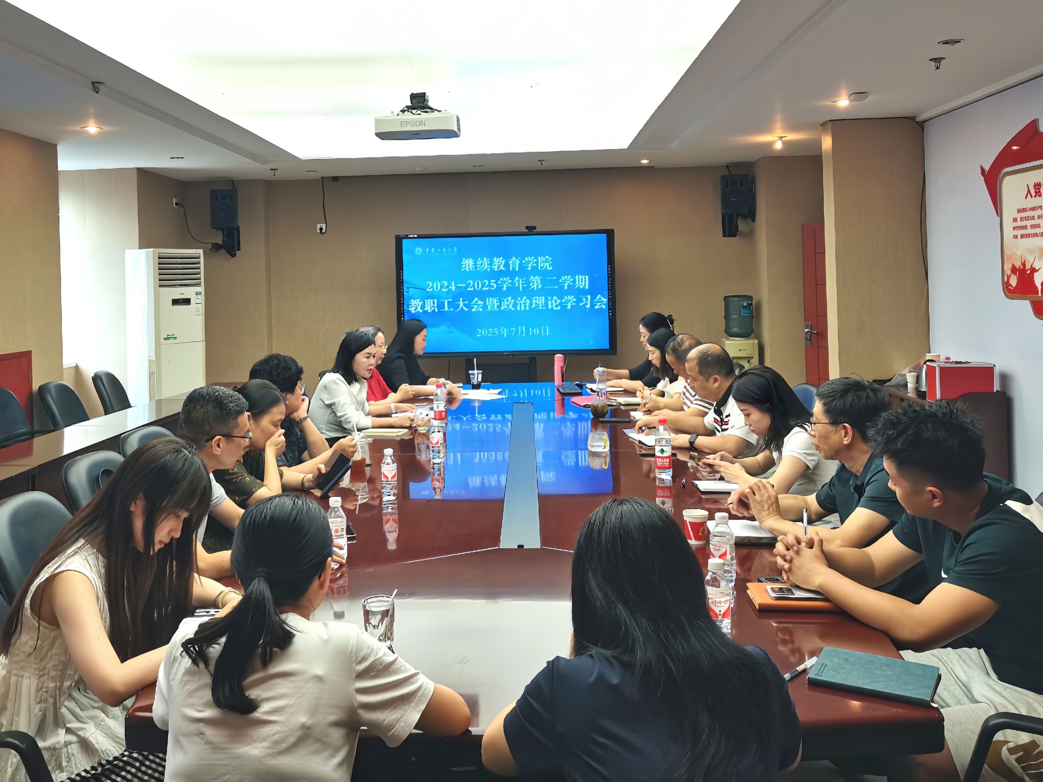 7月10日,ok138cn太阳集团组织召开教职工大会暨7月政治理论学习会,会议由学院院长王燕主持,全体教职工参加了会议。