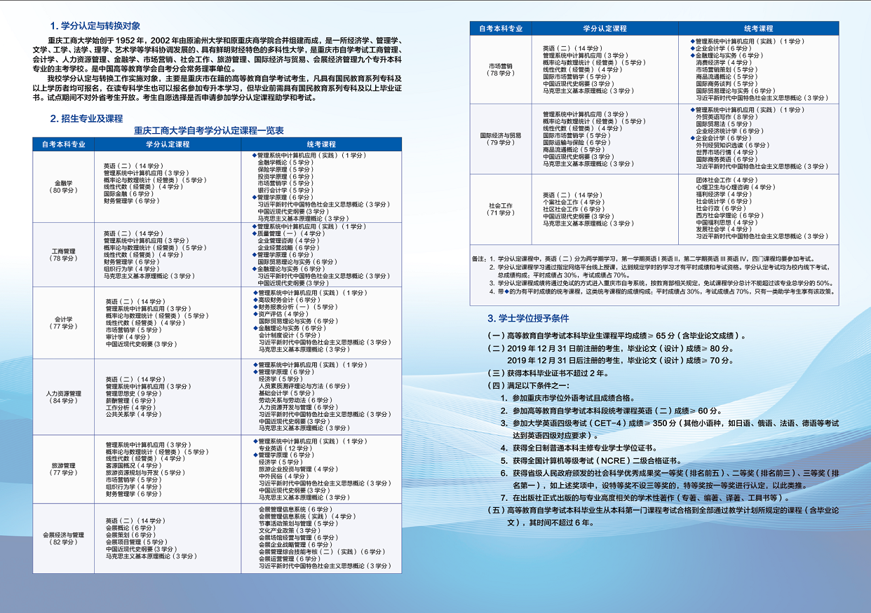 重庆工商大学高等教育自学考试2025年招生简章