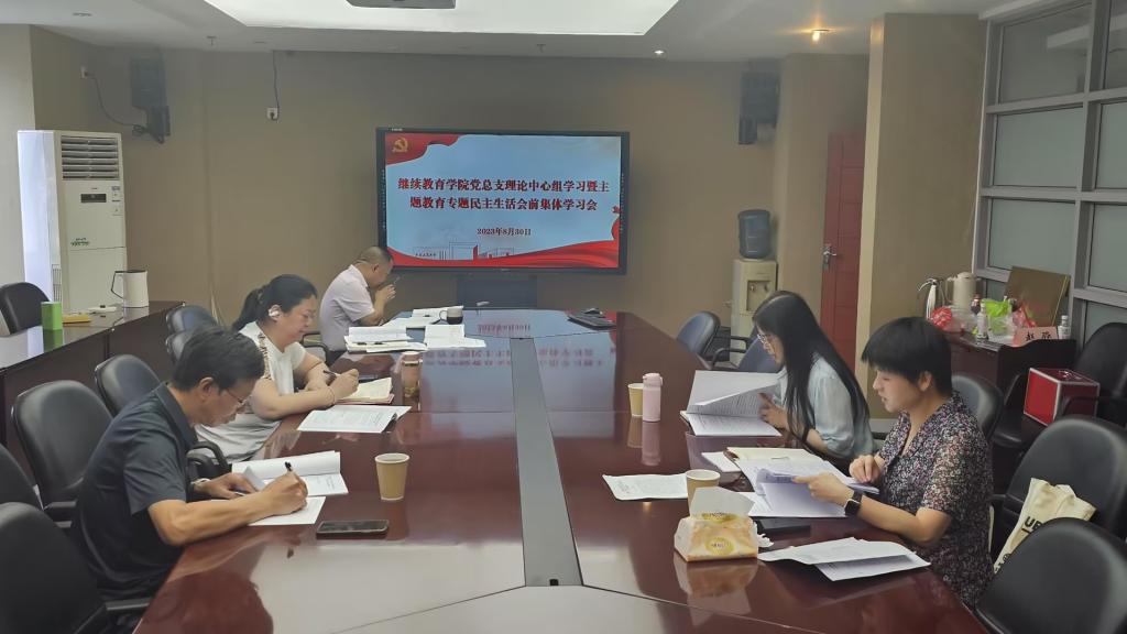 为进一步统一思想、深化认识,高质量开好学习贯彻习近平新时代中国特色社会主义思想主题教育专题民主生活会,8月30日,ok138cn太阳集团组织召开党总支理论中心组学习暨主题教育专题民主生活会前集体学习会,会议由党总支副书记陆嘉主持,院长杜朝辉及党总支委员、教工支部委员参加了学习。