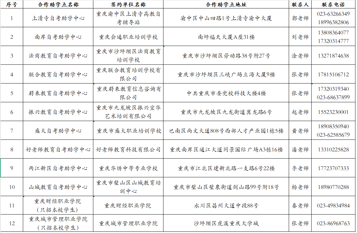 重庆工商大学自考助学单位一览表